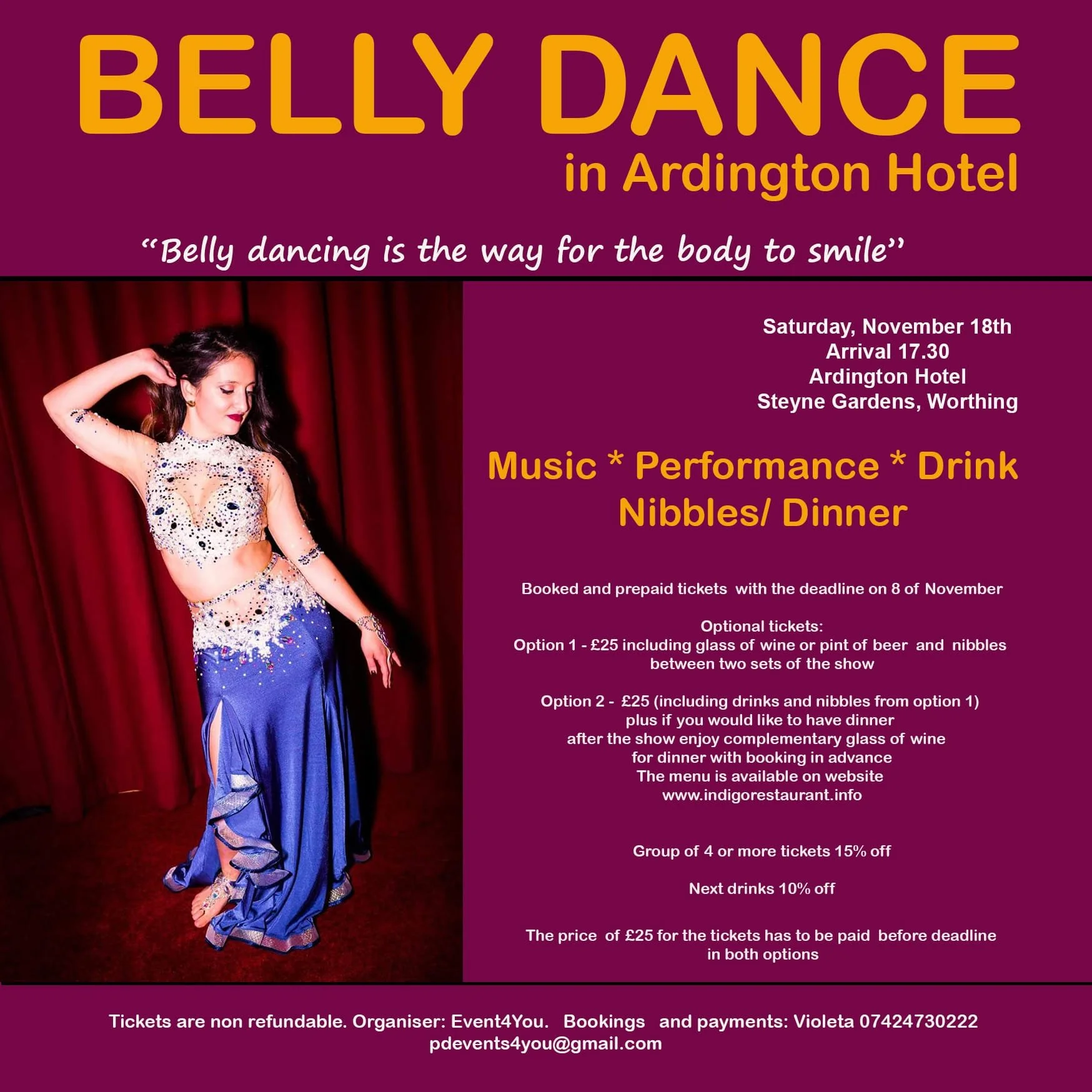 Event4you will be hosting a belly dancing event here at The Ardington Hotel, home of Indigo Bistro and Bar. Enjoy drinks, nibbles and a fantastic performance.