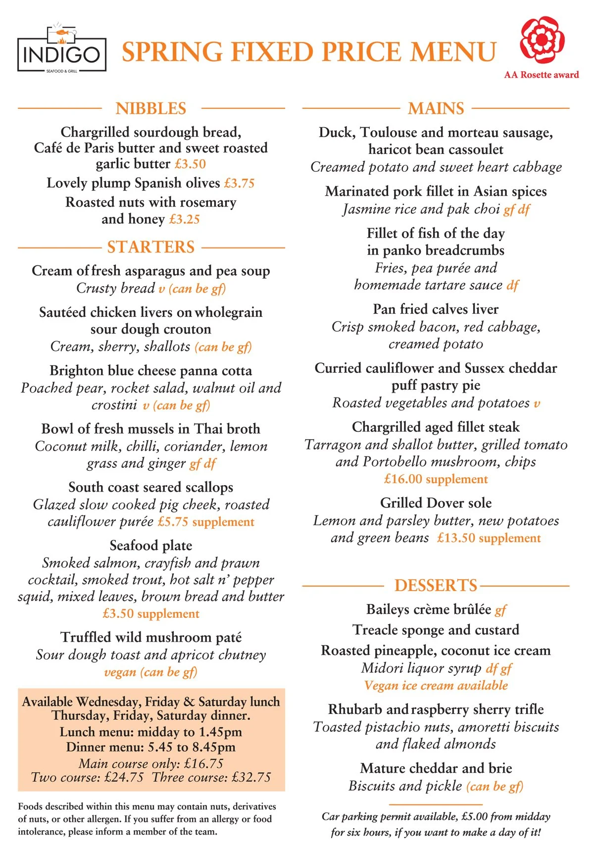 Good Friday Live Blues, Spring menu & seafood platters